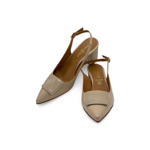 Sofisticación y estilo se unen en este zapato de tacón destalonado para mujer de DANIELA VEGA. Confeccionado en piel de acabado acharolado en tono nude, presenta puntera fina y un elegante detalle geométrico en el empeine que aporta distinción y modernidad. Su tacón ancho proporciona estabilidad y comodidad, perfecto para largas jornadas o eventos especiales.