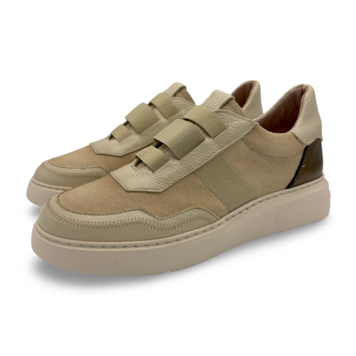¡Comodidad y diseño exclusivo para tu día a día! Estas deportivas de mujer en tonos beige combinan piel vacuna lisa, ante suave y detalles metalizados que aportan un toque actual y versátil a tu estilo. Incorporan elásticos anchos en el empeine que aseguran un ajuste perfecto y práctico, eliminando la necesidad de cordones. Su plataforma ligera y suela de goma antideslizante garantizan estabilidad y confort en cada paso.