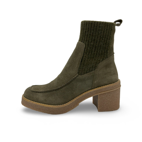¡Atrévete con el estilo y la comodidad en tus looks de otoño-invierno! Este botín calcetín de Toni Pons, en elegante tono verde oliva, combina ante suave con un original diseño tipo calcetín elástico que se adapta perfectamente al tobillo. Su tacón medio y la suela efecto goma aportan estabilidad y confort para el día a día, mientras su estética moderna y versátil permite llevarlo tanto con vaqueros como con vestidos o faldas.